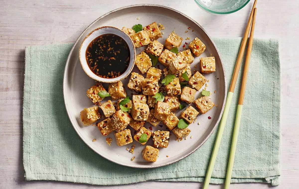 این غذا جایگزین تخممرغ در صبحانه است. توفو سرشار از پروتئین، آهن و کلسیم است و میتوان آن را با ادویههایی مثل زردچوبه، فلفل و سبزیجات مخلوط کرد تا طعمی مشابه املت تخممرغ پیدا کند.