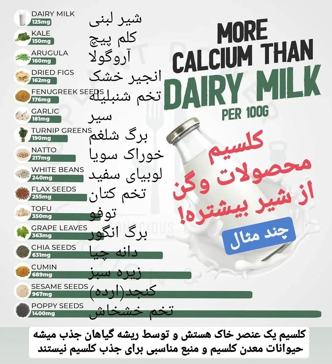 - غذاهای غنیشده (fortified foods): شیر گیاهی غنیشده با کلسیم و ویتامین D، غلات صبحانه غنیشده، مخلوطهای سویا/توفو غنیشده — با مشورت متخصص تغذیه میتوانند بخشی از رژیم باشند.